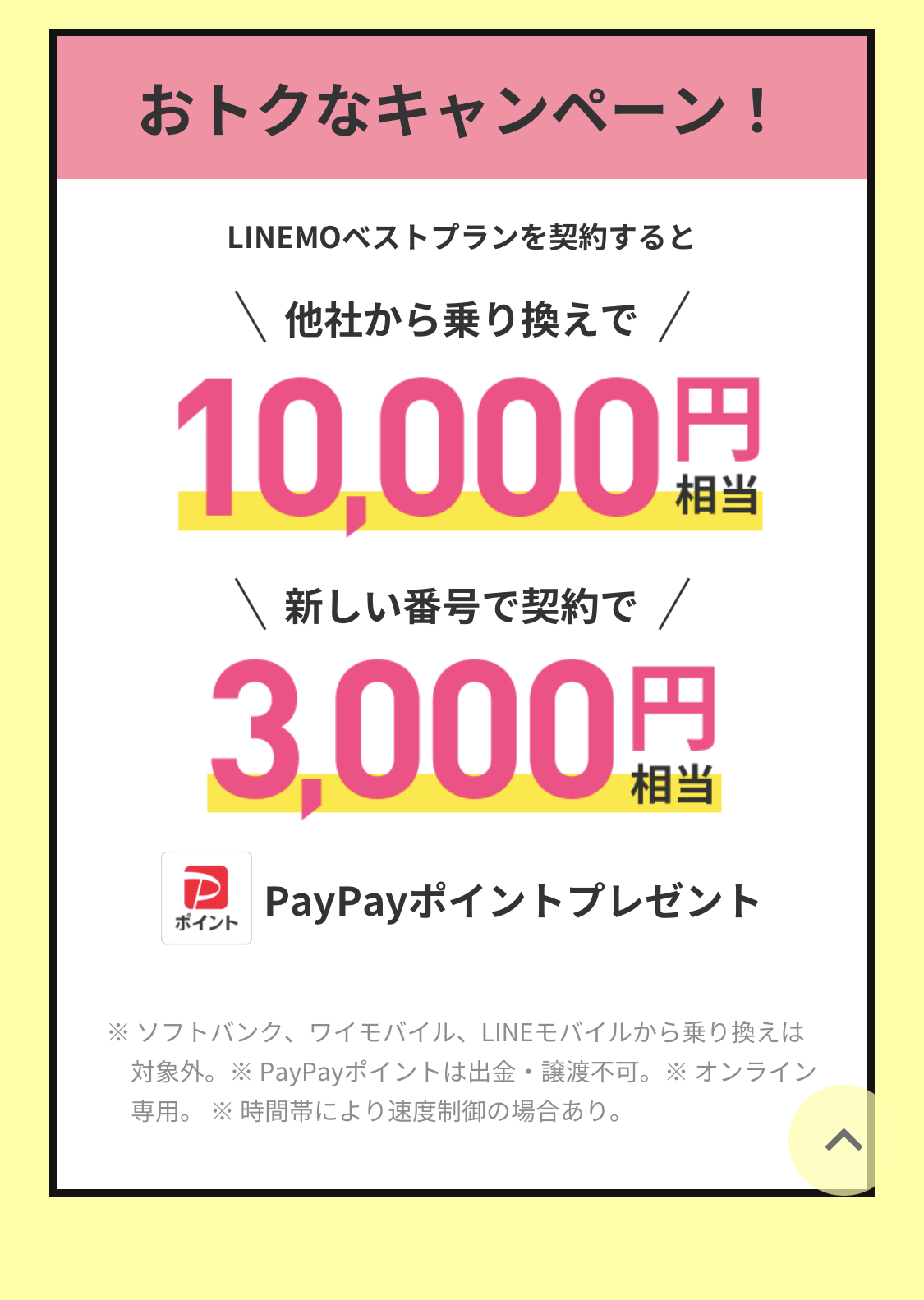 ◆LINEMO キャンペーン① PayPayボーナスあげちゃうキャンペーン
