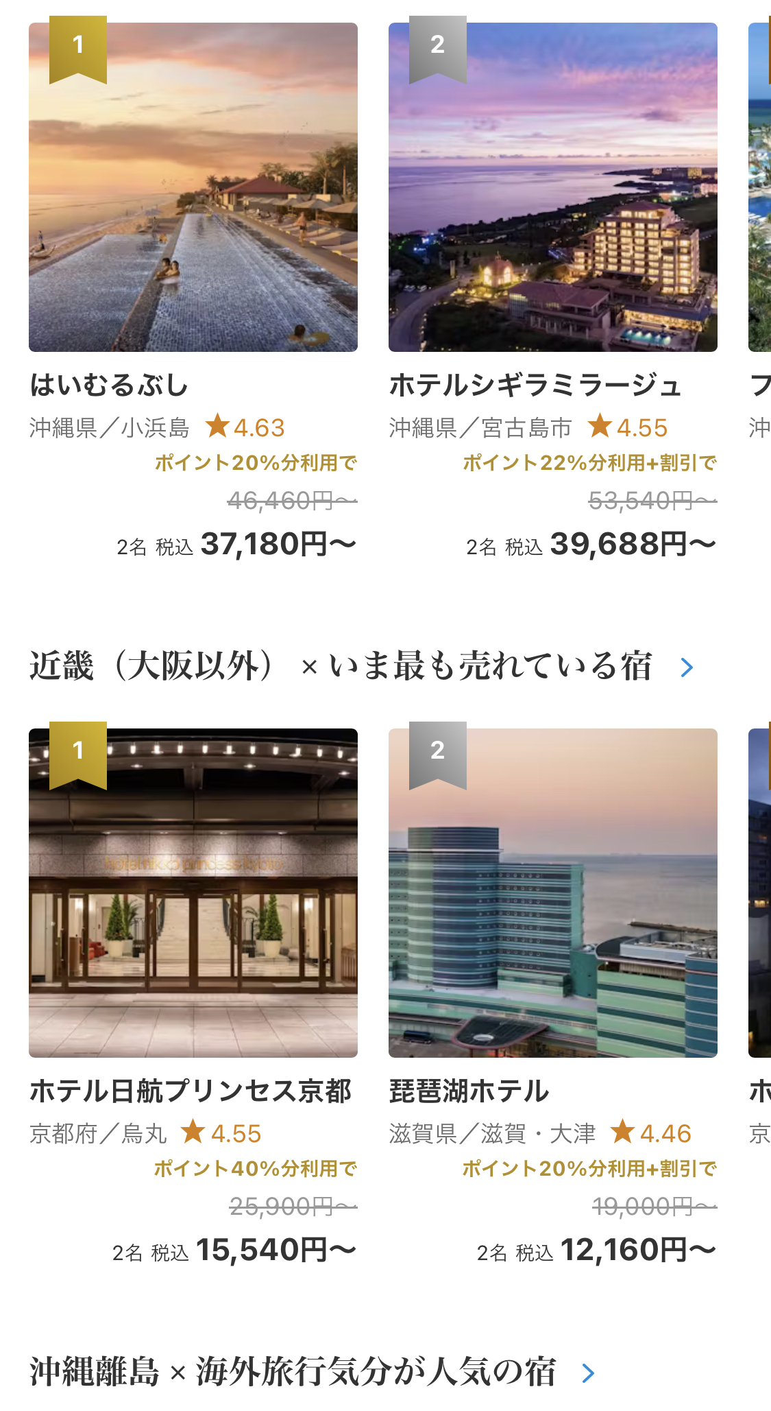 1泊2日で両親と自分の3人で大体7万円位を予算に考えて探してみました。
