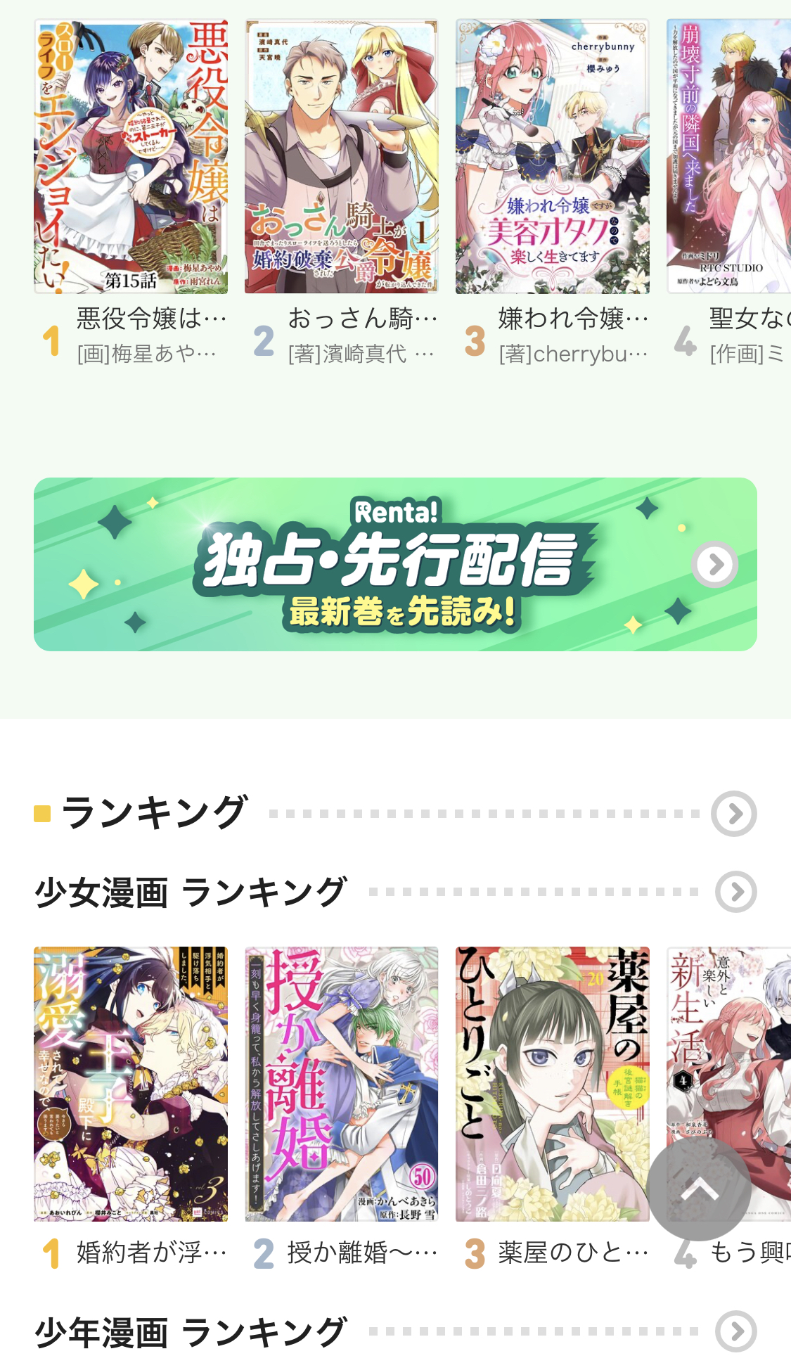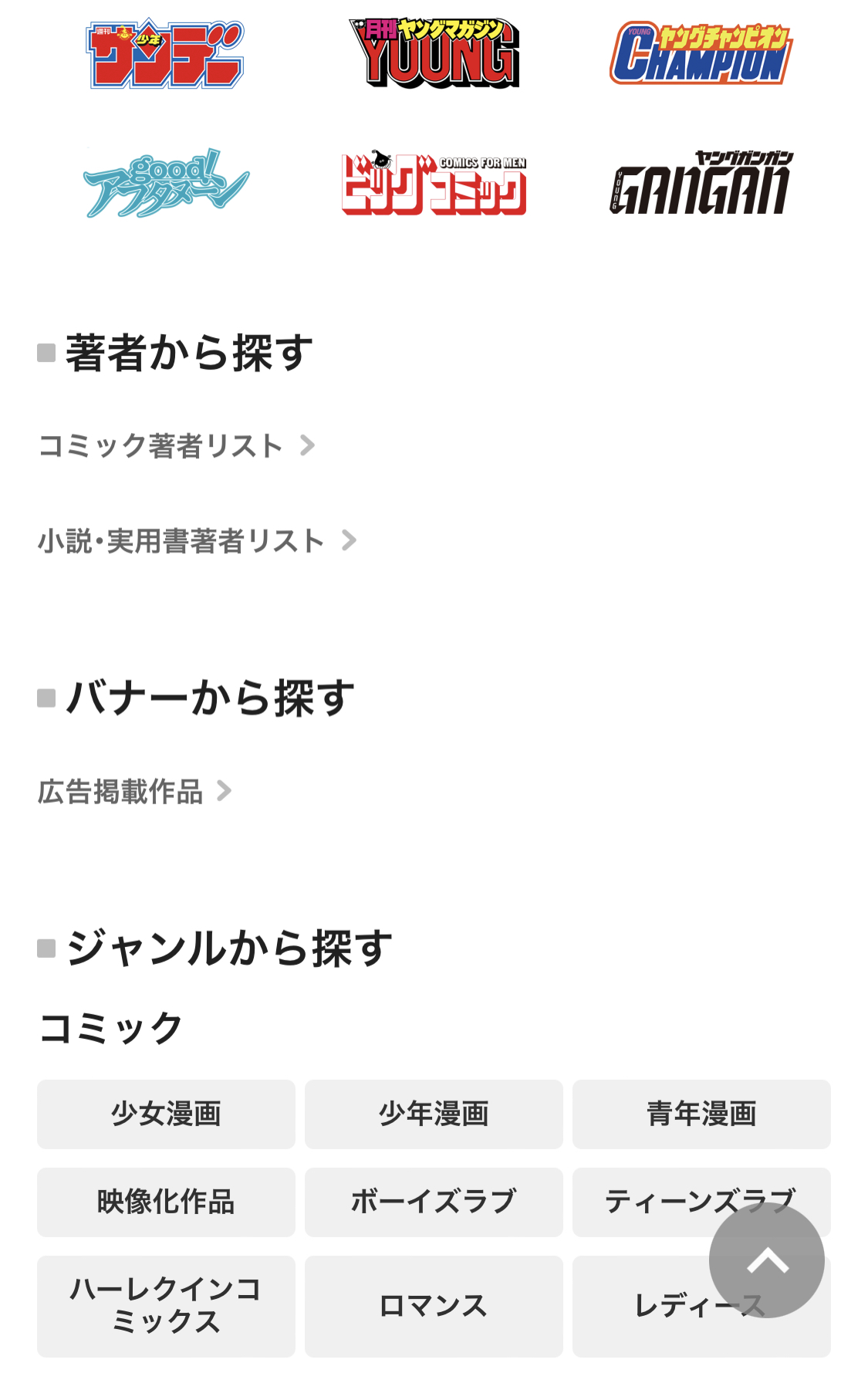 こちらも漫画を中心としたラインナップで、女性向け・男性向け共に幅広いジャンルを揃えています。